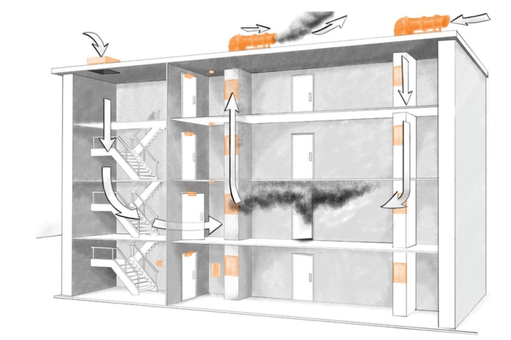 Sistemul de desfumare inteligentă trebuie să fie conectat la sistemul de alarmă la incendiu, detectoare de fum, automatizări BMS, alimentări de rezervă, etc. Astfel, totul funcționează coordonat. - monitorizare și mentenanță predictivă